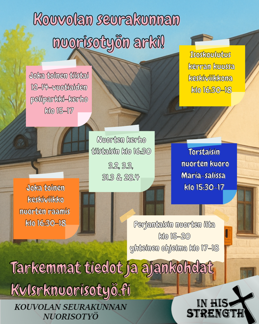 Nuorten omaa kerho toimintaa, tehdään erilaisia asioita yhdessä. Koivistontalolla klo 16:30 seuraavina päivinä: 3.3, 31,3 ja 28.4
